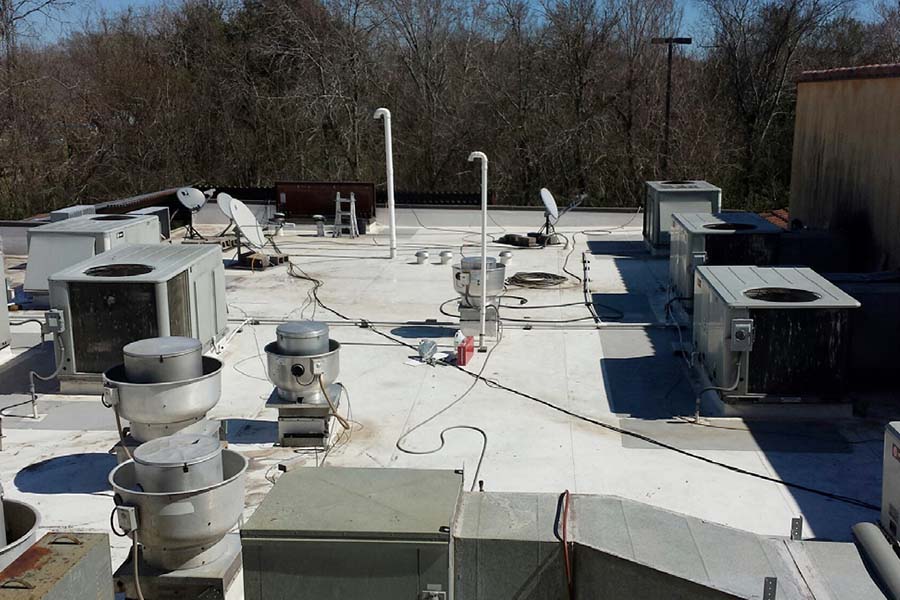 Client had consistently coated terrazzo floor with 4-8 coats of wax. On a quarterly basis, a burnish and buffing was required to remove scratches and yellowing from wax applications. Annually, wax was stripped and re-applied. Client sought a long-term solution: easy to clean and maintain, and provide a high-gloss shine for appearance.
